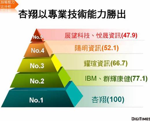 Post Views: 410 (一). 傑出資訊應用獎在集合業界優秀的專業人員全力開發下,已有相當良好的醫療資訊系統在各大醫院使用,秉持著上述理念,杏翔公司獲得客戶與政府資訊單位–資策會的肯定,經由資訊月主辦單位由141家競爭者中,針對所有候選單位的用護,逐一詢問使用結果與滿意度,並由資策會副執行長率同專業人員,針對電腦設計理念和技術嚴格審核、擇優票選,作出的審慎決定:於2001年10月榮獲行政院長頒發傑出資訊應用獎 (二). 2011年台灣醫療業e化大調查廠商評比第一名 專業技術能力–第1名定價/收費合理性–第1名支援與維護能力–第1名如期履約能力–第1名教育訓練之提供–第2名 (三). 2013年資訊月百大創新產品獎 (四). 2013年雲端創新獎季軍 如果您想進一步了解產品詳情, 請與我們聯繫. [聯絡杏翔]